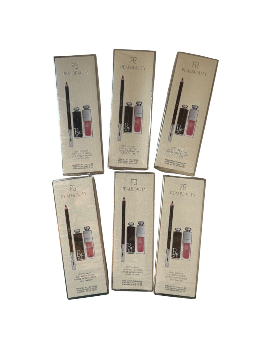 طقم روج ثلاث قطع ريل بيوتي (مرطب + محدد شفايف + روج ثابت) عدة درجات
