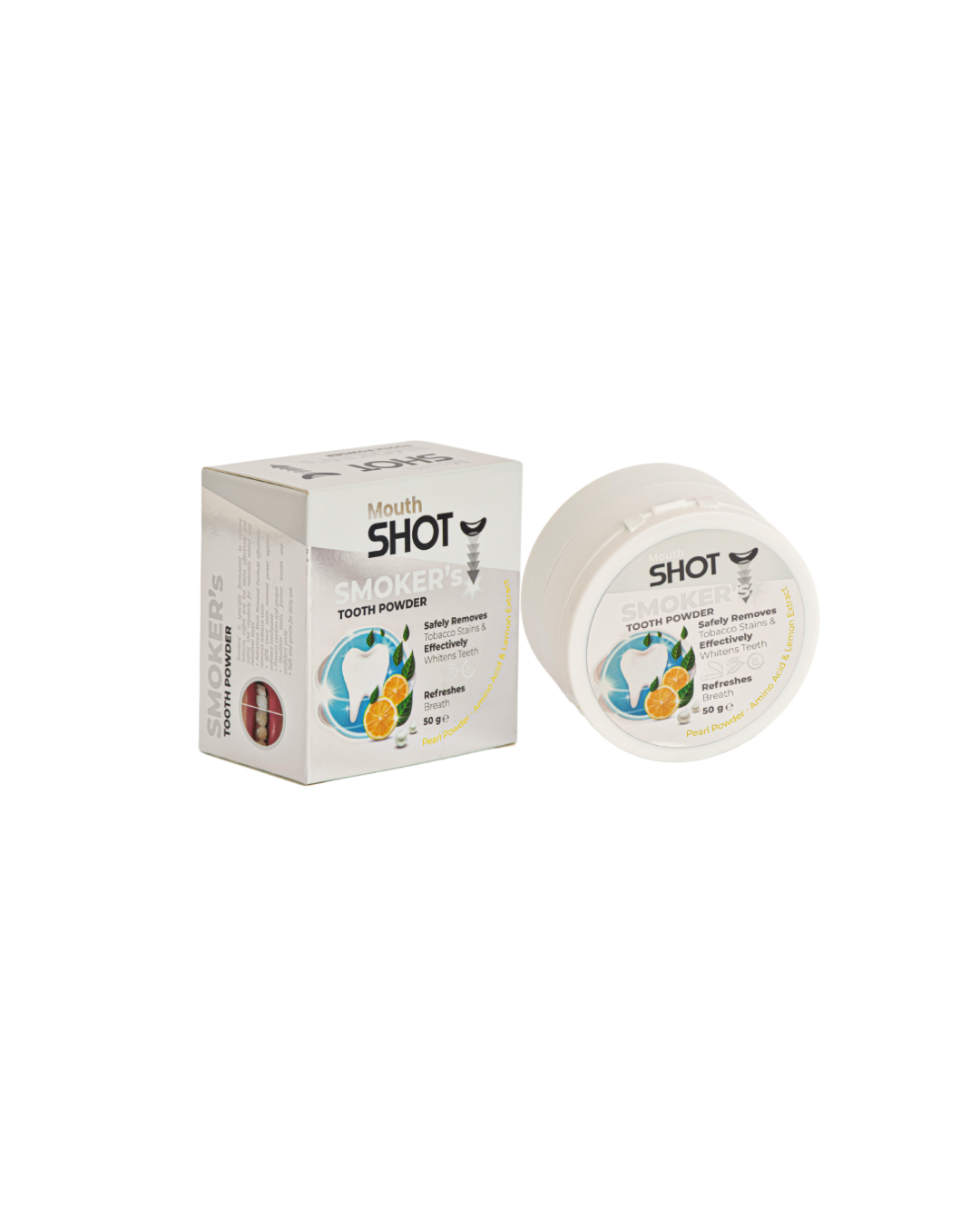 بودرة تبييض الأسنان للمدخنين ماوث شوت – بخلاصة الليمون واللؤلؤ - من شوت 50 جرام