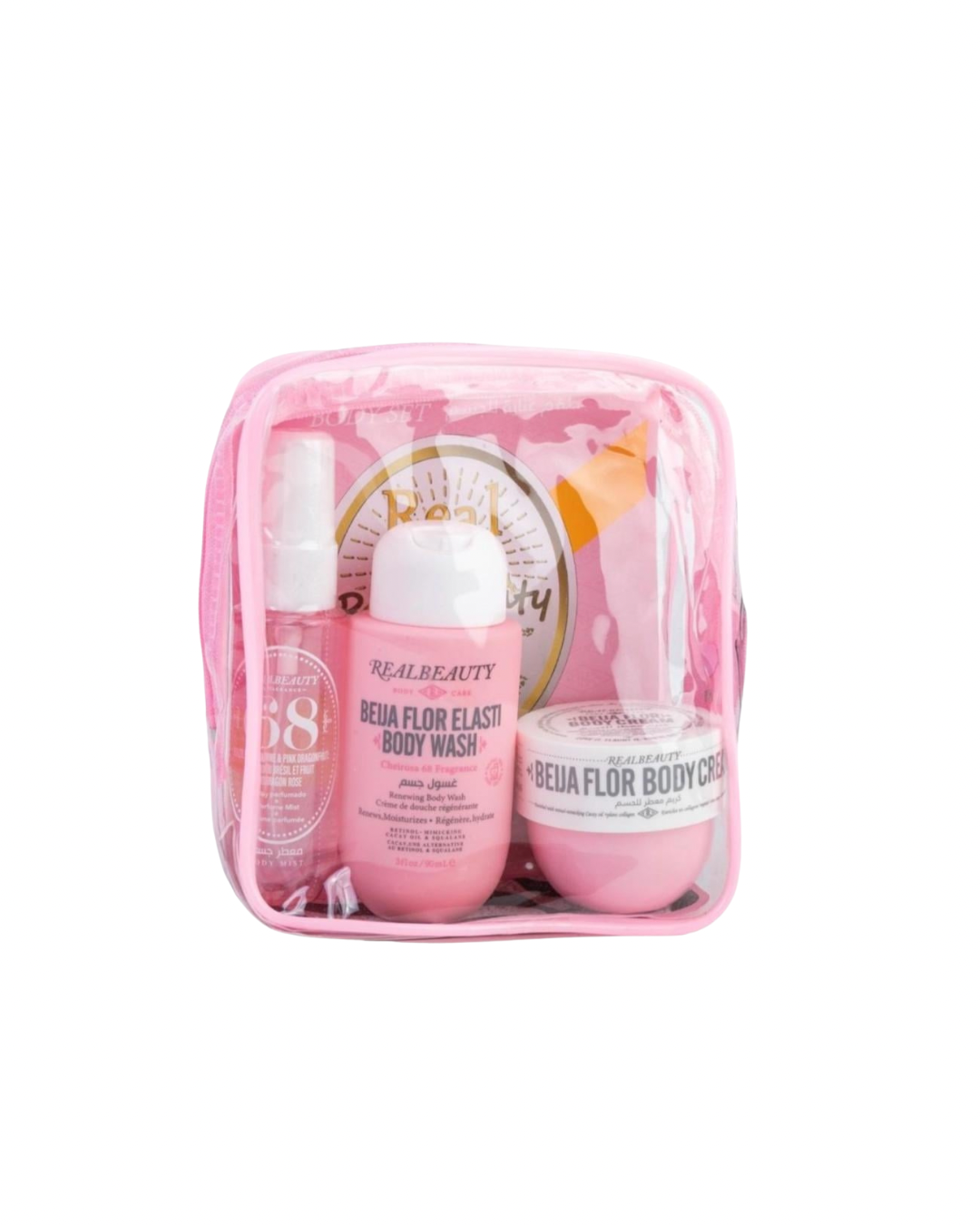 طقم العنايه بالجسم غسول ومعطر وكريم من ريال بيوتي - زهري